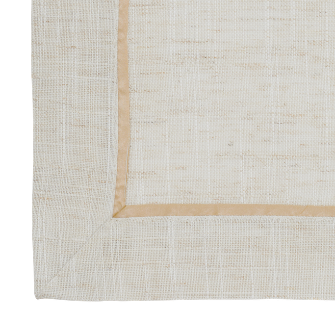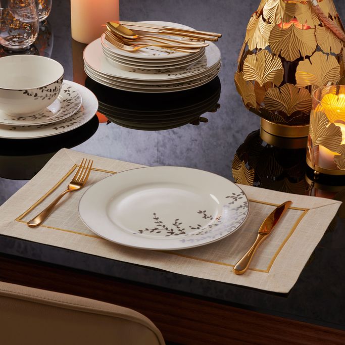 انفجار الأناقة. دع الرائع غلاسكو مفرش طعام يضفي جمال وأناقة على طاولة طعامك ويبرز شخصيتك وعنايتك بالتفاصيل. تباهى برونق طاولتك واخلق أجواء خلابة حول غرف تناول الطعام. بطراز رقيق وعصري يتميز ببطانة ذهبية ليعطيك بريقًا من الفخامة. يأتي باللون البيج ليتناسب مع كل أنواع الديكور لمائدتك. تمتع بانفجار من الأناقة في كل أوقات طعامك.