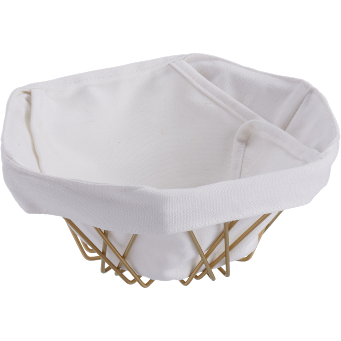 انطباع فاتن. اجذب العيون واخطف القلوب مع سلة الخبز جيو. مصممة بأنماط هندسية حديثة لتكشف عن جمال مخبوزاتك ومعجناتك اللذيذة. قطعة ستندمج بسلاسة مع ديكور بيتك وتضيف لمسة أنيقة إلى طاولتك. صنعت من معدن عالي الجودة باللون الذهبي لإضفاء فخامة فاتنة. تأتي مع قماش أبيض لتحافظ على طعامك طازجًا. اترك الانطباع الذي تستحقه مائدتك.