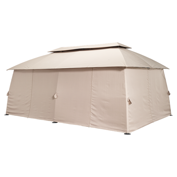 ليالي السمر. اصنع مكانًا للذكريات السعيدة وليالي السمر مع خيمة بورانو. استمتع بأمسيات مرصّعة بالنجوم وصباحات مشرقة تحت الظل الحالم الذي تخلقه هذه القطعة. يضفي النسيج ذو اللون البيج طابعًا مريحًا لجميع مناسباتك المميزة في الهواء الطلق. احظَ بأوقات سهر شيّقة مع العائلة والأصدقاء من خلال إغلاق الستائر وتحويلها إلى خيمة واسعة. يمكنك أيضًا إزالة ستائرها لاستنشاق النسمات العليلة والتمتع مع أحبابك بألحان المساء. اخلق أجواء ساحرة للضحكات وتبادل الأحاديث من خلال تعليق المصابيح والزينة على السقف الداخلي للخيمة. صُنعت من قماش وفولاذ قوي يمكنك تثبيتها أينما كنت. عش لحظات مميزة تغمر قلبك بالبهجة.
