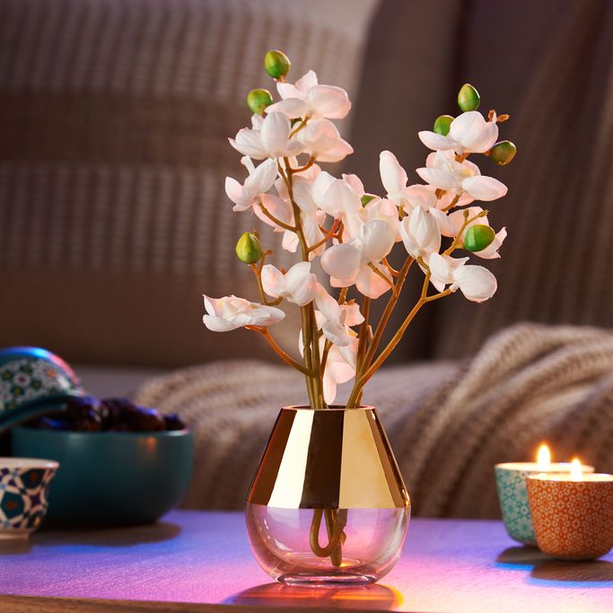 كنوز الحضارات. قدم كنوز التاريخ النابضة بالحياة لمنزلك مع المميزة مزهرية أندلسية. دعها تضع لمساتها على ديكورك وتقدم لك قطعة تخطف الأضواء. بتصميم يجسد جمال والفخامة ليدع زهورك تتألق بروعتها. اعرض ورودك ذات الأرجل الطويلة واخلق مساحة مليئة بلمسات الطبيعة. صنعت يدويًا من الزجاج الشفاف ومطلية باللون الذهبي لتعزز أناقة ديكورك. دع البهجة تزين منزلك.