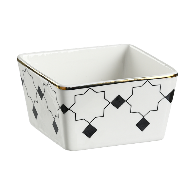 أشعة الذهب. دع الأشعة الذهبية تتناثر على طاولتك بكل بهاء مع الرائع بريق وعاء تغميس. أثري أمسياتك وتميز بتفاصيل تنسيق طعامك لتجذب انتباه ضيوفك. قدم صلصاتك المفضلة الحمص والطحينة بأسلوب أنيق ينافس جمال أرقى الموائد. صمم بحواف ذهبية مشعة لتعزز ديكورك وتعطيك قطعة من الذهب. صنع يدويًا من الخزف الصيني باللون الأبيض والذهبي ليضع بصمته الخاصة. استمتع باللمسات اللامعة في بيتك.