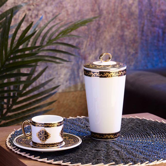 ازدهار الفن. تفرد بالأصالة بلمسات من الذوق الباروكي بين تفاصيل ديكورك مع نوركا جرة تخزين. دعها تعكس روعة فنها الآسر داخل منزلك لتتحي عمق ما حولها. مثالية لتخزين الحلويات والمكسرات بطريقة مرتبة وأنيقة. صنعت من السيراميك بالألوان الأبيض والأسود والذهبي لتزين منزلك بلمحات فنية. انغمس في الروعة الأثيرية لفن الباروك