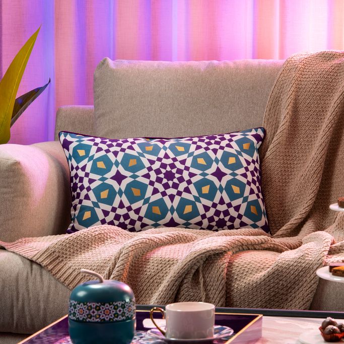 تحفة بصرية. بلمحات من إمبراطورية البهاء تقدم أندلسية غطاء مخدة صوفا نسمات من عبق الحياة لبيتك. أضف إحساسًا مليئًا بالفن والحيوية إلى ديكور صوفتك. يعكس نقوشه امتداد الثقافات والجمال ويخلق مشهدًا يمتع العين. صمم ببصمات تاريخية ونسمات مبهجة ليعيد لمنزلك الفرح والسعادة. صنع من الكتان باللون البنفسجي المثالي لتعزيز جمال غرفك. دع منزلك يبدو وكأنه معرض من صفحات التاريخ.