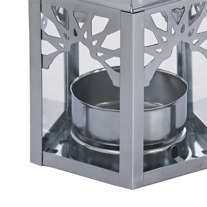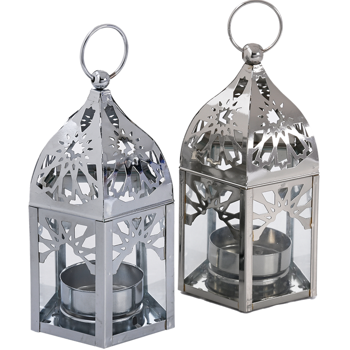لمحات إسلامية تضيء محيطك مع خيران طقم فوانيس. سيحكي في منزلك قصة نهاية الظلام وفجر النور لينشر الروحانية أينما وضع. مصمم بأنماط إسلامية جذابة وأبعاد فاخرة لتزيين منزلك بأناقة. صُنع من المعدن والزجاج بلون فضي يتألق بفخامته. ألهم مساحتك ببريق الروحانية.