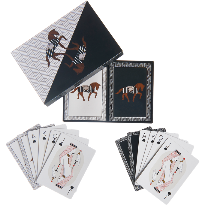 العب بفخامة. قدم مجموعة أنيقة للعب والتسلية مع عائلتك أو ضيوفك. استكشف الزين حزمة أوراق وهي تأخذك في رحلة ساحرة عبر عالم الخيال. صممت كل بطاقة كلوحة فنية منفصلة وبشخصيات تنقلك إلى عالم مختلف. صنعت من الورق باللون البني والأبيض والأسود برسومات تحاكي الثقافة بأصولها. اجعل كل شخصية تأتي إلى الحياة وتترك انطباع دائم عليك.