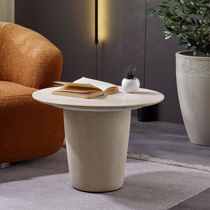 اكتشف سحر الطبيعة في منزلك مع لوسو طاولة جانبية. صُممت بشكل دائري ناعم، حيث يضفي على مساحتك لمسة من الأناقة والهدوء. صُنعت من مزيج متناغم من الترافرتين والألياف الزجاجية، مما يجعلها قطعة فنية متينة مقاومة للخدش.