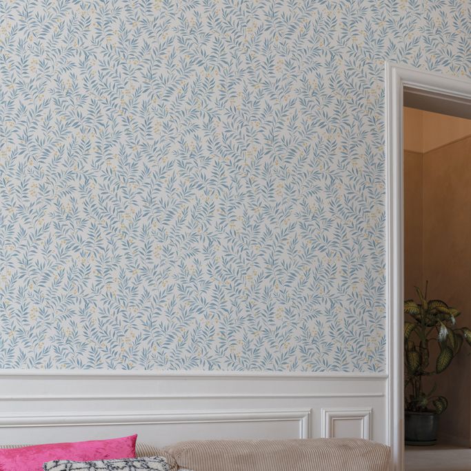 استمتع بأجواء الطبيعة في مساحتك مع ميزون ورق جدران. مصنوع من بلاستيك الفينيل والقماش غير المنسوج باللون الأزرق الفاتح، ويتميز بتصميم أوراق نباتية رقيقة تضيف لمسة من الهدوء والبساطة. امنح جدرانك طابعًا متناغمًا يتكامل بانسجام مع ديكورك الداخلي.