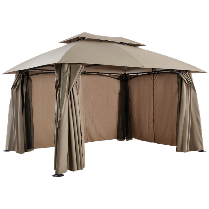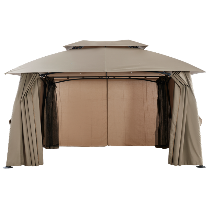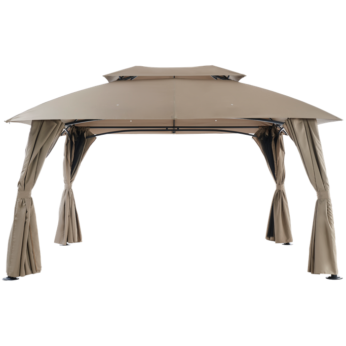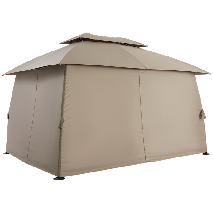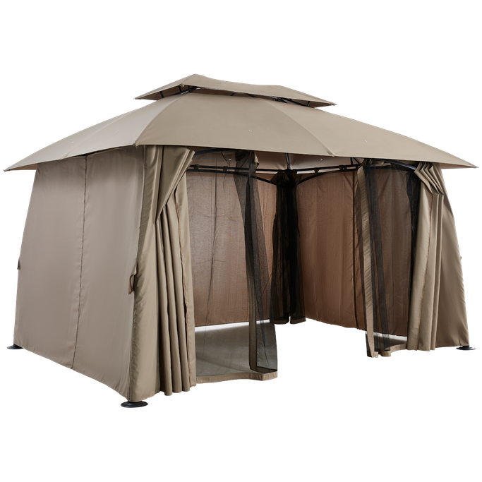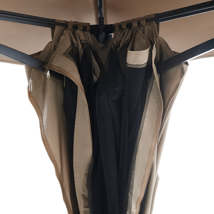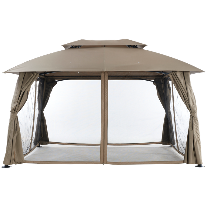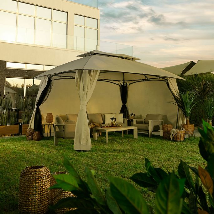 ليالي السمر. اصنع مكانًا للذكريات السعيدة وليالي السمر مع بورانو خيمة. صُممت لتكون ملاذك المثالي في الهواء الطلق بفضل هيكلها الفسيح والمستقر، فهي مزودة بسطح مزدوج وأعمدة قوية تضمن لك أمانًا وثباتًا في جميع الظروف؛ ستائرها القابلة للفتح والإغلاق تمنحك المرونة بين الاستمتاع بالخصوصية أو الانغماس في النسمات المنعشة. صُنعت من فولاذ متين وقماش بوليستر عالي الجودة باللون البيج، مما يضفي لمسة من الأناقة والعملية على تجربتك في الهواء الطلق. عش لحظات مميزة تغمر قلبك بالبهجة.