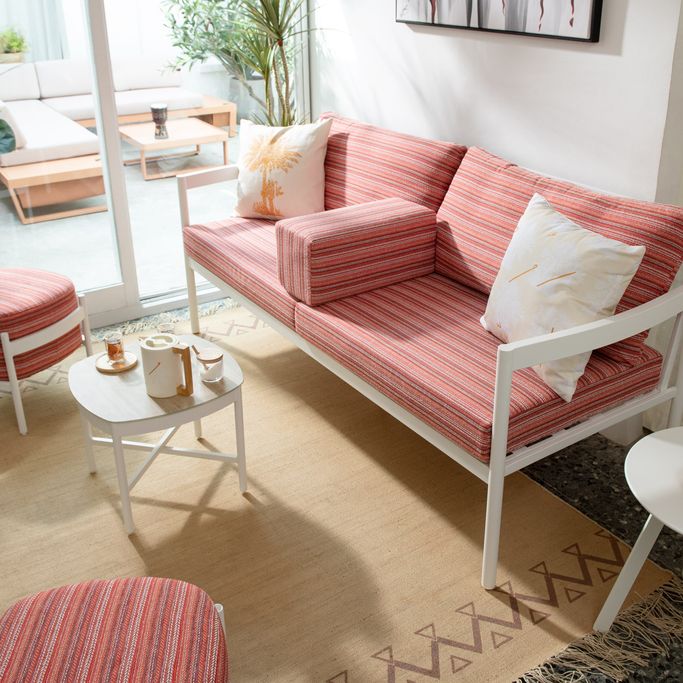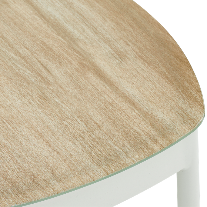 التقاء الوظيفية مع الأناقة في سدو طاولة تقديم. صُممت بسطح شبه دائري ذو حواف منحنية بلطف، وإطار معدني أنيق مع أربعة أرجل مستقيمة، مما يوفر مزيجًا من البساطة والثبات. صُنعت من الألومنيوم المتين باللون الأبيض، مع سطح يحاكي ملمس وشكل الخشب البلوطي الطبيعي، لتجمع بين جمال المظهر الخشبي ومتانة المعدن في تحمل الظروف الخارجية. إضافة مثالية لتكمل مجموعة أثاث حديقتك بأسلوب عصري وأنيق.