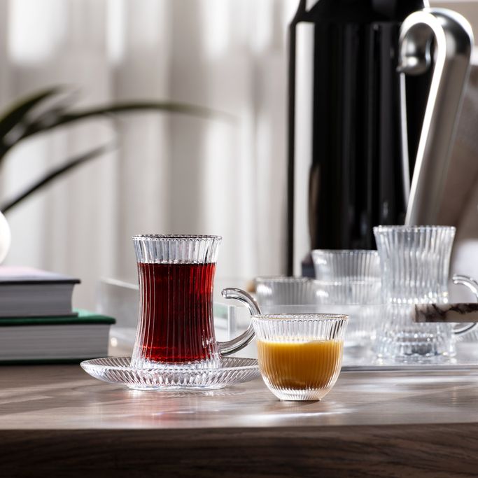لاينز طقم فناجين شاي وقهوة - شفاف