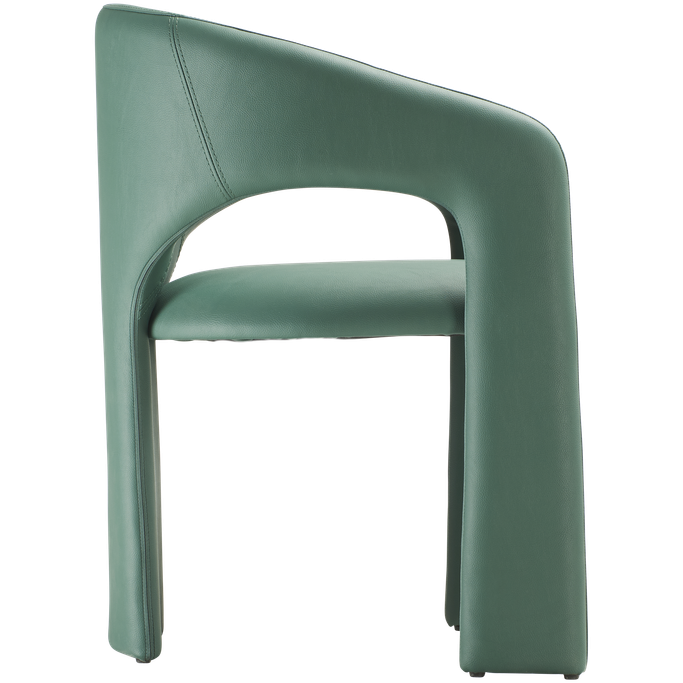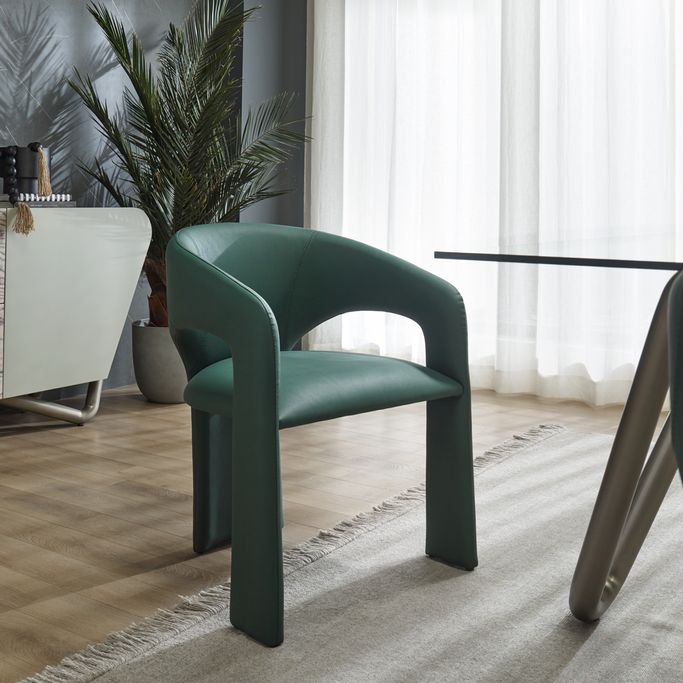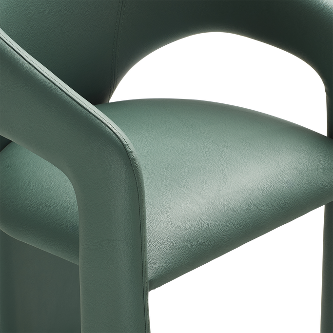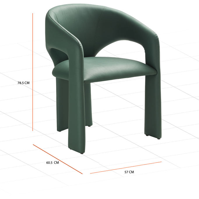 استقبل ضيوفك بذوق رفيع مع كرسي طعام سول. صُمم بشكل هندسي متناسق يجمع بين الظهر المنحني والمقعد المريح، مع قاعدة متينة تضمن الثبات. صُنع من هيكل فولاذي مغطى بالفوم والجلد الصناعي باللون الأخضر. تألق في جلسات طعامك اليومية بأسلوب عصري متفرد.