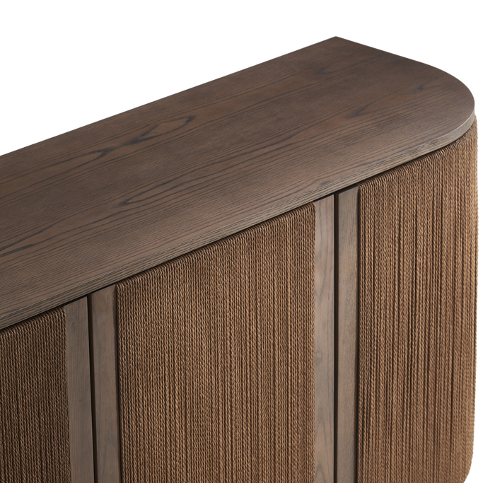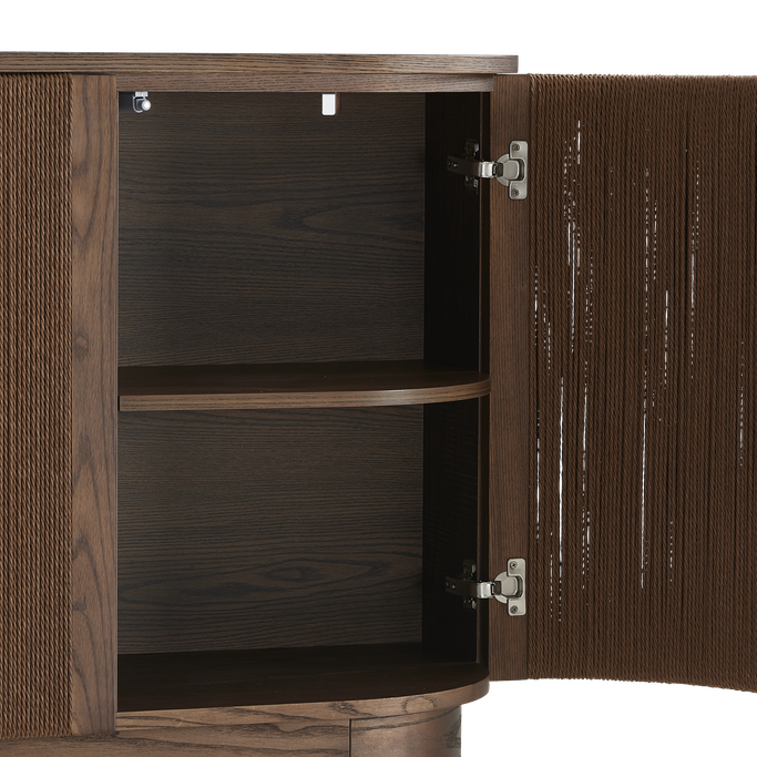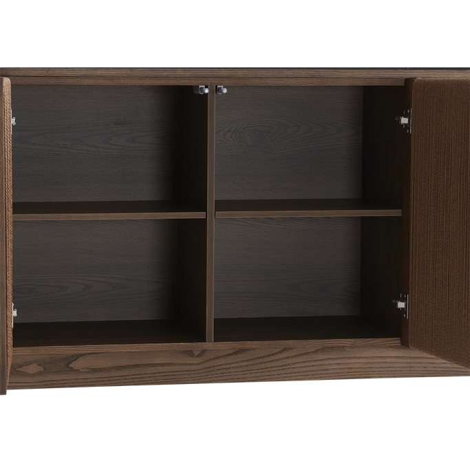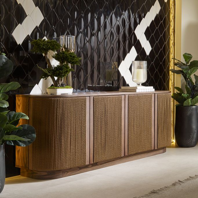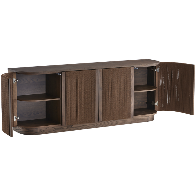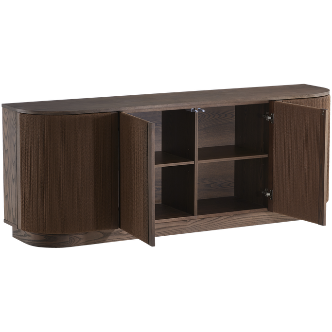 عبر عن ذوقك الراقي مع أوربن بوفيه الطعام. صمم بواجهة مستطيلة وأبواب ذات خطوط رأسية تعزز الأناقة مع مساحة داخلية رحبة تناسب التخزين والتنظيم. صُنع من قشرة خشب طبيعية باللون البني الغامق. اجعل من مساحات التخزين عنصرًا فنيًا يثري ديكور منزلك.