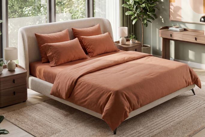 بامبو غطاء لحاف مع غطائين وسادة - موكا - ٢٠٠ x ٢٠٠ سم