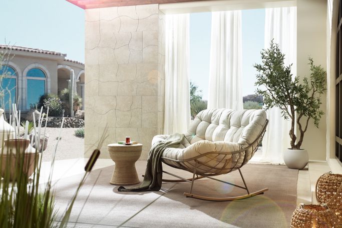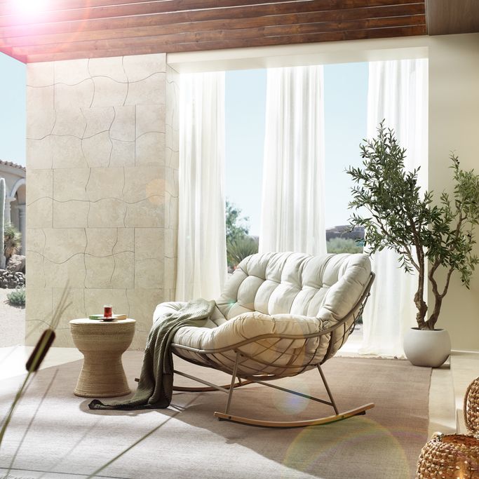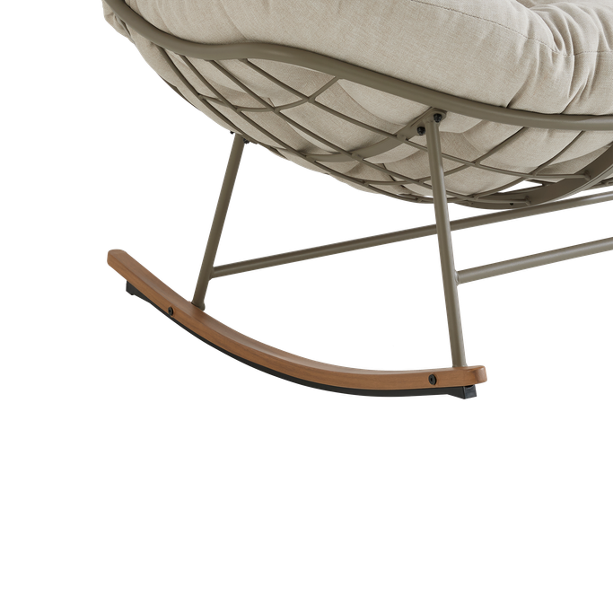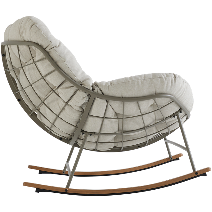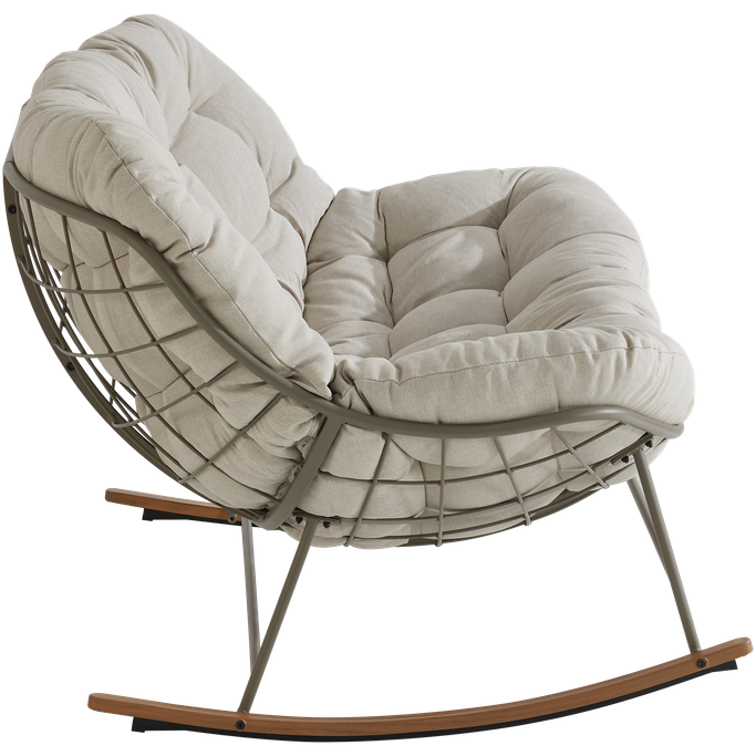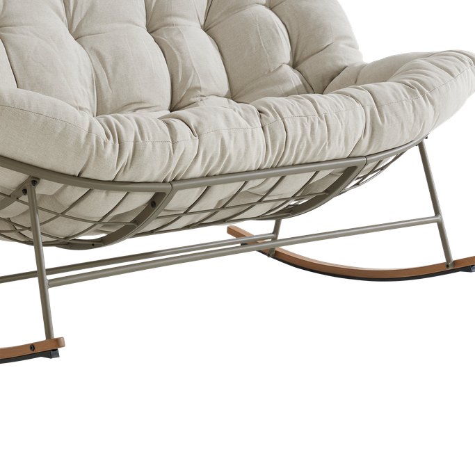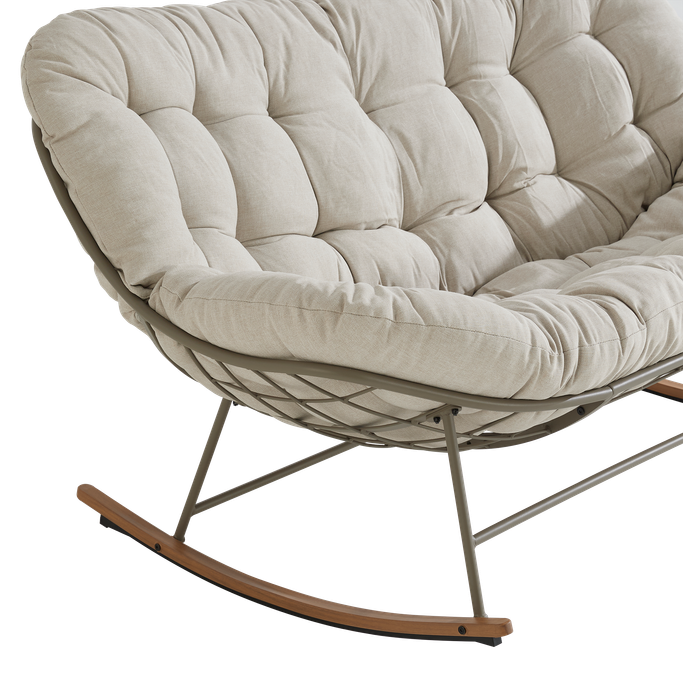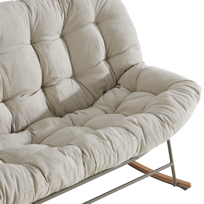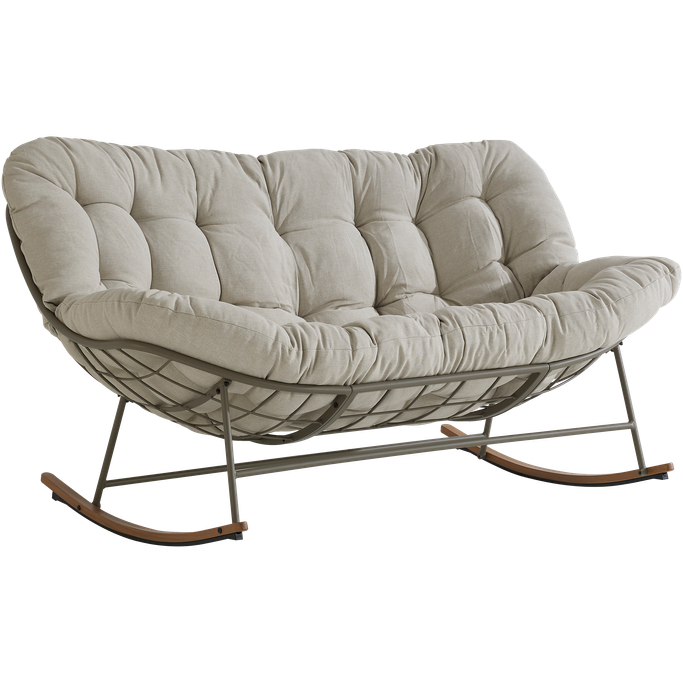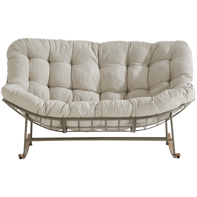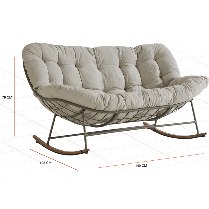 استرخِ على سحابة من الراحة مع كلاود كرسي هزاز. صُمم ليتّسع لشخصين، بهيكل شبكي مفتوح تستقر عليه وسادة كبيرة ومبطّنة تمنحك راحة مثالية أثناء الجلوس. صُنع من هيكل فولاذي متين، مع وسادة من قماش البوليستر باللون البيج. شارك أحبّائك الذكريات والضحكات التي لا تُنسى.