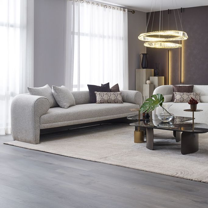 اكتشف تجربة استرخاء جديدة مع آموري صوفا، حيث يمتزج التصميم المريح مع الأناقة العصرية. صُممت بظهر مبطن يندمج بسلاسة مع الأذرع الدائرية الكلاسيكية، وجلسة واسعة تدعوك للاسترخاء. صُنعت من هيكل خشبي متين ومكسوة بألياف البوليستر باللون الرمادي، لتضفي لمسة من الرقي والنعومة على أي مساحة.