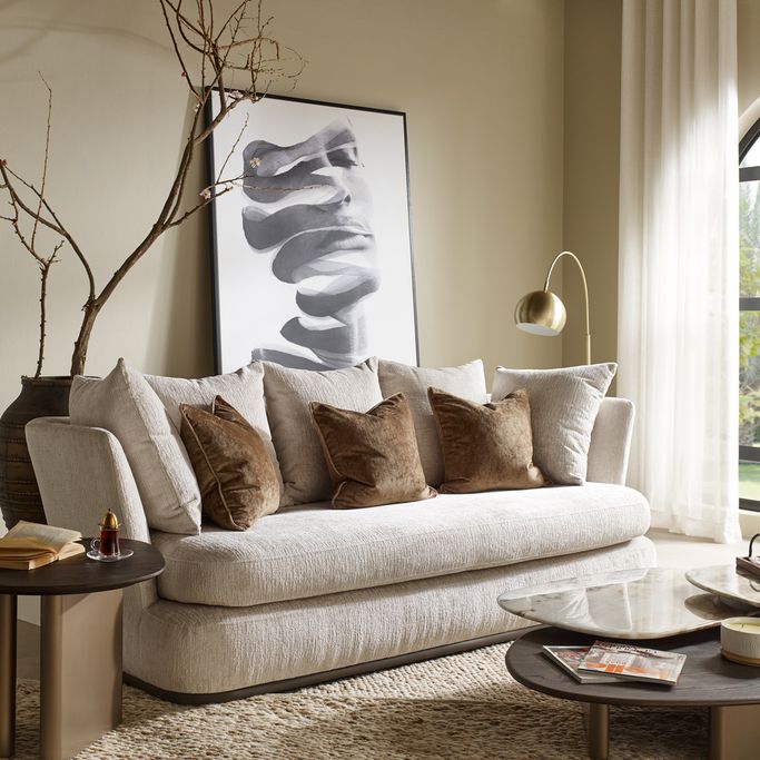 استعد لأمسيات لا تُنسى مع نوفولا صوفا. صُممت بمنحنيات انسيابية مع جلستها المريحة وأذرعها في تناغم جمالي. صُنعت من الخشب القوي والقماش الناعم بلون البيج الدافئ، لتضمن لك الدفء والمتانة.