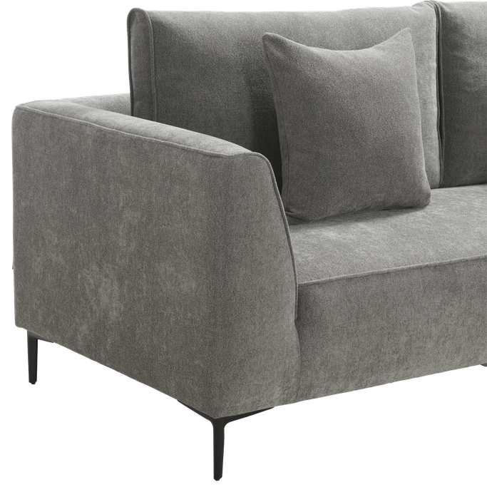 الفت انتباه ضيوفك بأناقة اختيارك مع لونا كنبة ثلاثة مقاعد. صُممت بشكل مستطيل مع مسند ظهر ووسائد إضافية، وأذرع جانبية، لتوفير أقصى درجات الراحة والدعم. صُنعت من إطار خشبي قوي وقماش البوليستر باللون الرمادي الغامق. اجعل من لحظاتك وجمعاتك تجربة مفعمة بالأناقة والجمال.