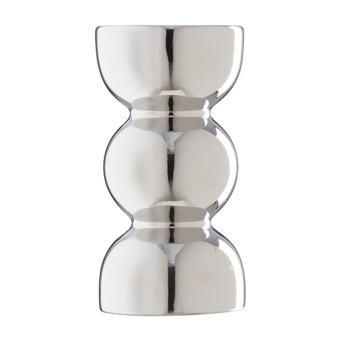 ملاذ من الصفاء. ترقب لحظات الهدوء التي تغمر الأجواء مع افريل حامل شموع صغيرة. أطفئ الأضواء ودع شعلات الشموع تتألق في الأجواء. صمم الحامل بشكل عمودي ومنحنيات ناعمة تضفي مشهدًا ساحريًا. صنع من السيراميك بلون فضي لامع يعكس بريق الذكريات. اجعل أمسياتك على ضوء الشموع ملاذًا هادئًا تتوق إليه.