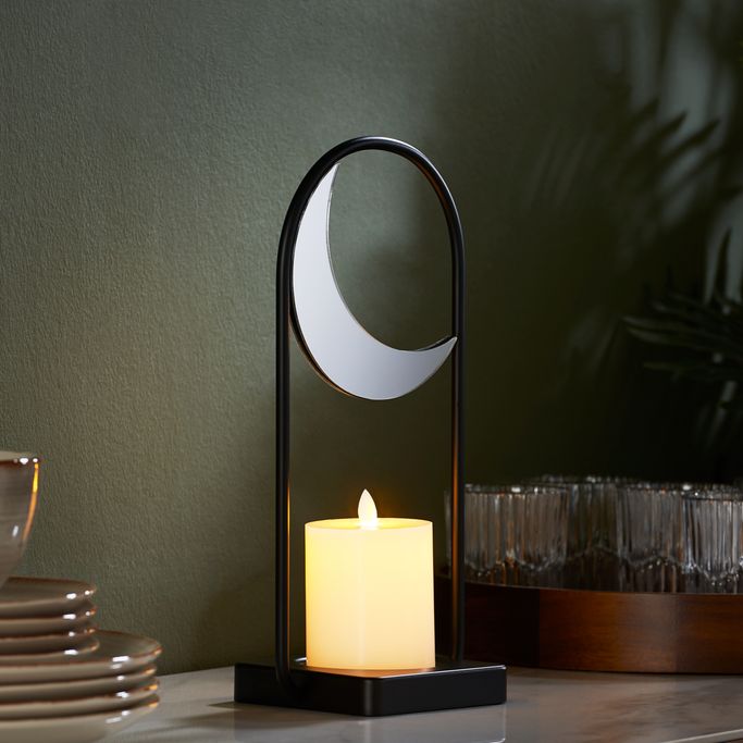 الجمال المشرق. أضئ ليالي رمضان بإشعاعات البهجة والسكينة في ظلال الشموع مع هل هلاله حامل شموع صغيرة. صمم الحامل بطبق صعير لوضع الشمعة وبمقبض مزين بهلال لإضفاء أجواء رمضانية لمنزلك. صنع من المعدن باللون الأسود والزجاج الشفاف ليكمل ديكورك بسلاسة، مما يجعل كل مساء احتفالاً بالجمال المشرق الذي يجلبه شهر رمضان.