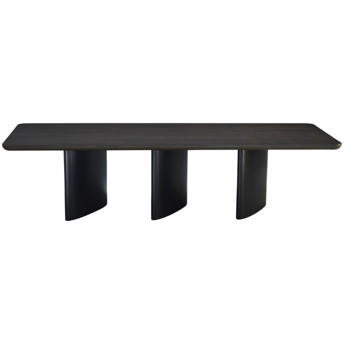 امنح غرفة طعامك هوية عصرية متفردة مع مايرا طاولة طعام. صُمّمت بسطح مستطيل واسع بحواف منحنية يرتكز على ثلاث قواعد متناغمة، وتتسع لعشرة أشخاص. صُنعت من خشب الألياف والقشرة الخشبية باللون البني. اكتشف متعة اللقاءات العائلية في مساحة تليق بأجمل الذكريات.