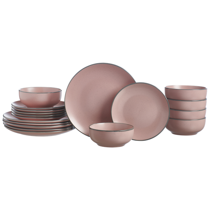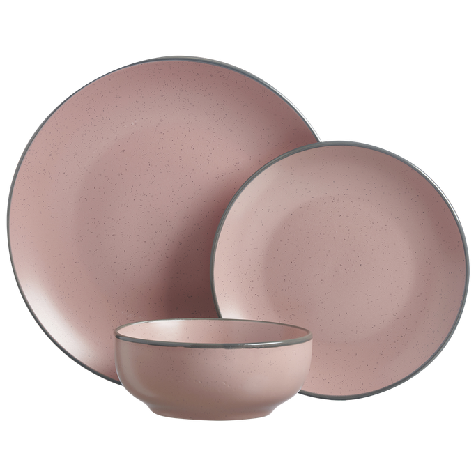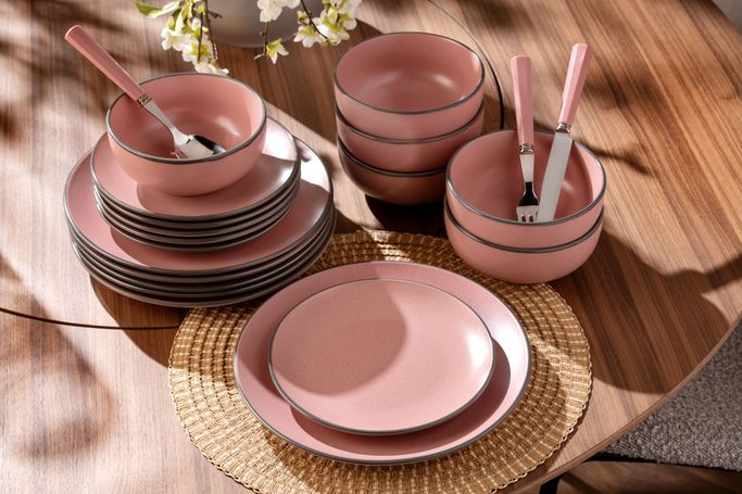 ناعمة كالسحابة. اكتشف السحر الشاعري في عاصفا طقم أواني طعام كمظهر من مظاهر الجمال الناعم في كل قطعة كالسحابة. صمم بأسطح ناعمة، بما في ذلك طبق العشاء، وطبق جانبي، ووعاء حساء ليضفي لمسة من التألق على طاولتك. صنع من الخزف الحجري باللون بنفسجي فاتح مع حواف ملونة رقيقة. اجعل طاولتك لوحة من الإبداع والجمال.