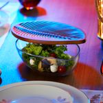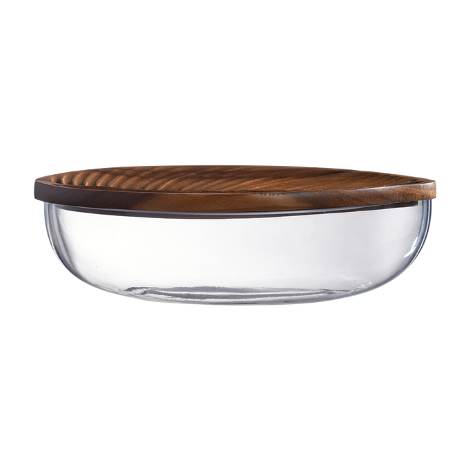 اشعر بنسيم الغابات في حضرت المميز كاي وعاء مع غطاء. سيثري جماله المستوحى من الطبيعية حضور الدفء في كل وجبة. سوف يأسرك بمزيجه المكون من الملمس الخشبي والخلفية الشفافة. صنع من الزجاج والخشب باللون البني. دع حضوره القوي وتفاصيله الفريدة تملأ مساحتك.