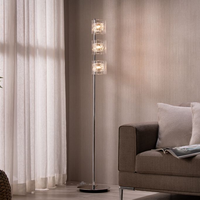 استمتع بجو هادئ ومُريح مع نيو إلسا إضاءة أرضية. صُممت بشكل عمودي أنيق مع طبقات زجاجية متعددة. صُنعت من الزجاج والمعدن باللون الكروم. أضئ مساحتك بأسلوب عصري.