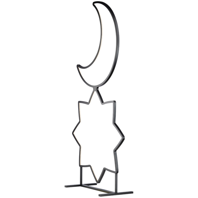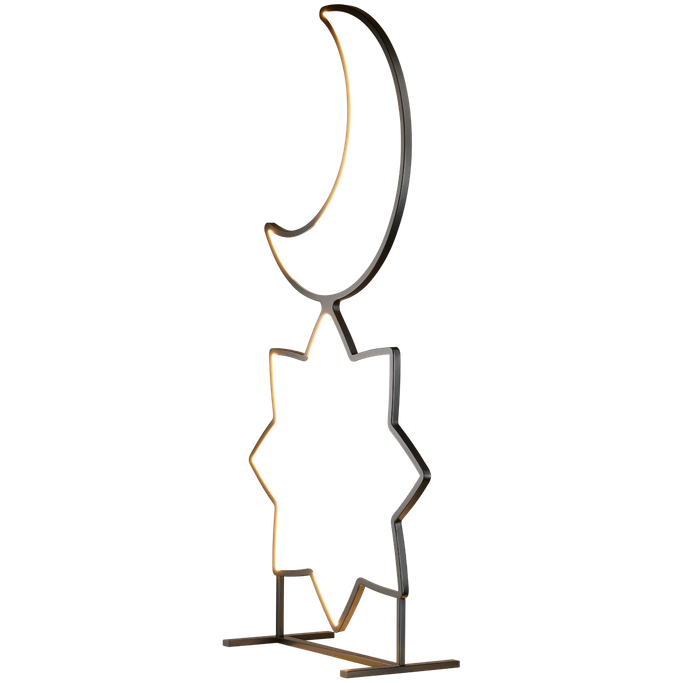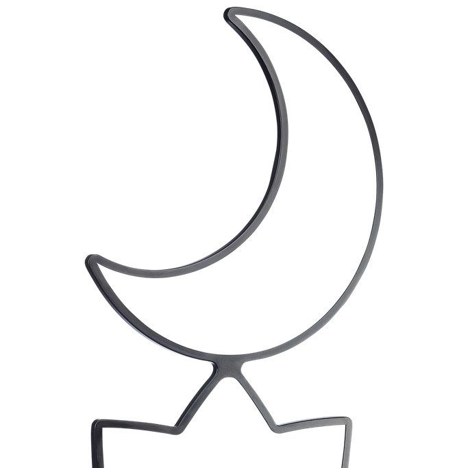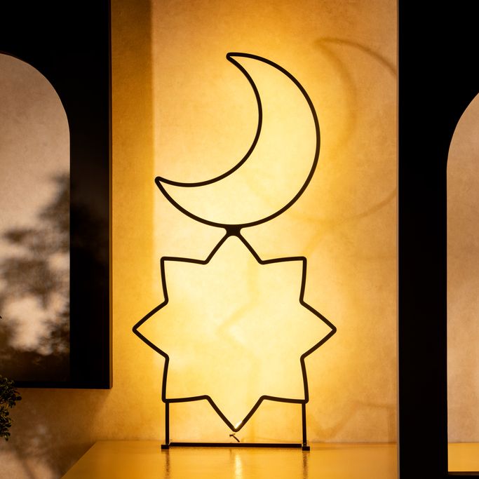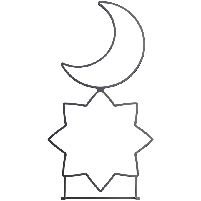 استقبل الليالي المباركة بأناقة مع الهامة قطعة ديكور. صُممت من هلال رمضان ونجمة بخطوط انسيابية تعكس سحر الليل في أبهى صوره. صُنعت من المعدن والبلاستيك باللون الأسود. زيّن منزلك بروعة السماء في أجمل لياليها.