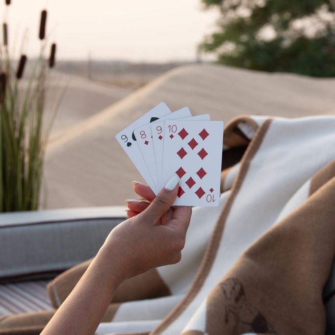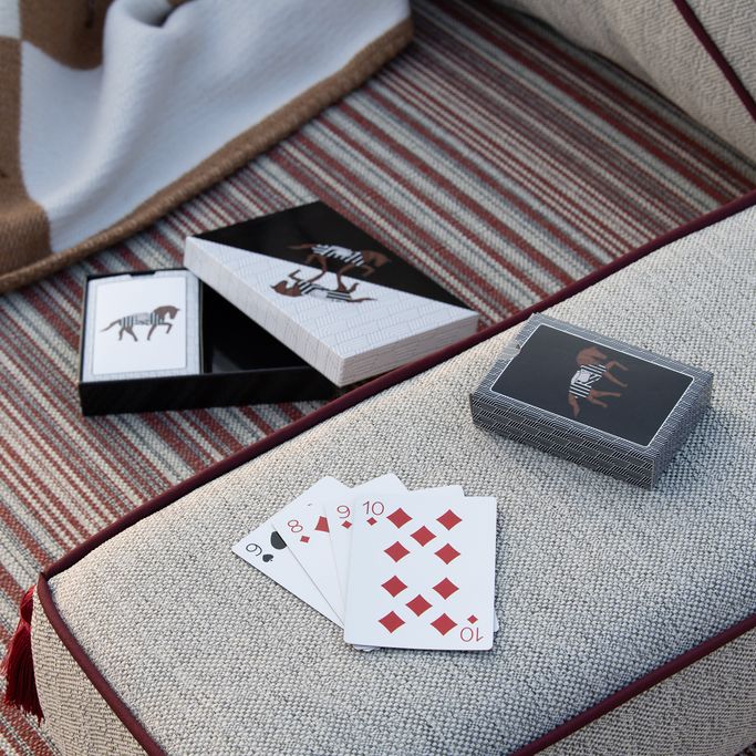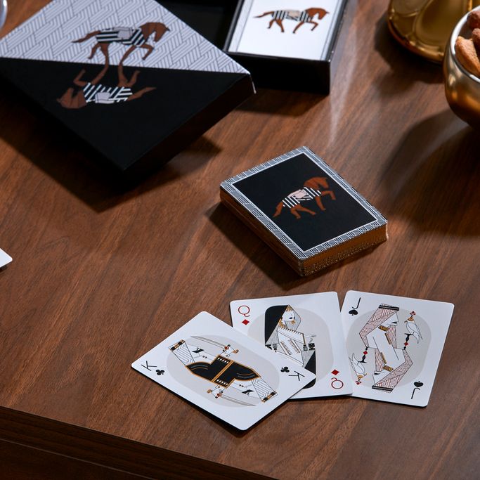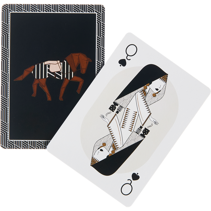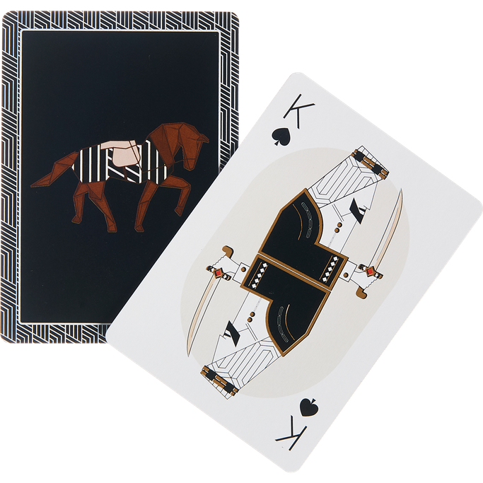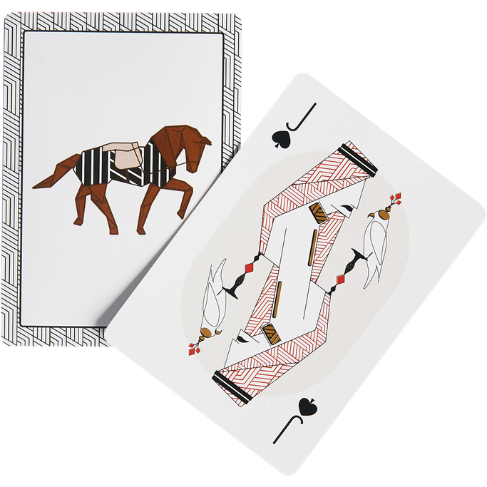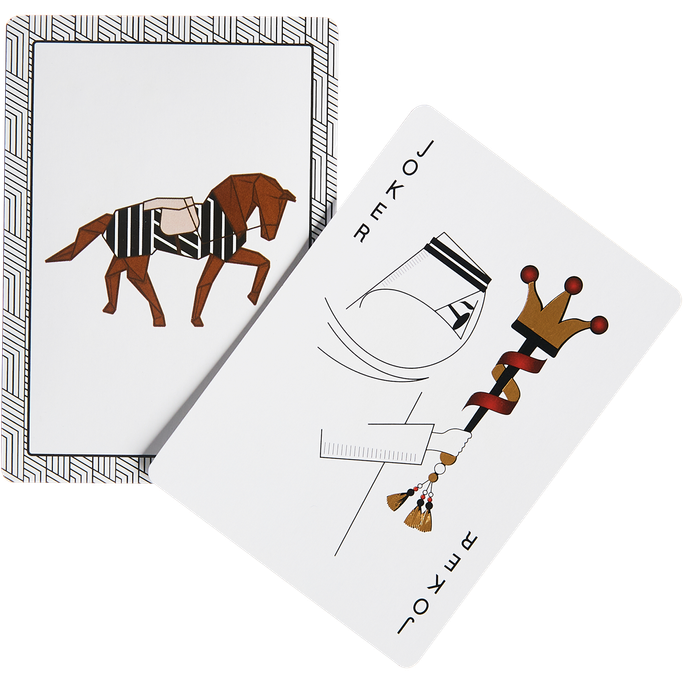 العب بفخامة. قدم مجموعة أنيقة للعب والتسلية مع عائلتك أو ضيوفك. استكشف الزين حزمة أوراق وهي تأخذك في رحلة ساحرة عبر عالم الخيال. صممت كل بطاقة كلوحة فنية منفصلة وبشخصيات تنقلك إلى عالم مختلف. صنعت من الورق باللون البني والأبيض والأسود برسومات تحاكي الثقافة بأصولها. اجعل كل شخصية تأتي إلى الحياة وتترك انطباع دائم عليك.
