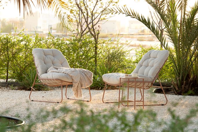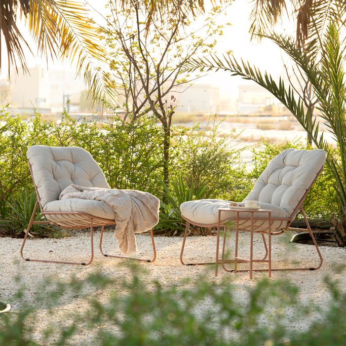 استمتع بالرفاهية في الهواء الطلق مع هالو طقم بلكونة. صُمّم بمقاعد مبطنة على شكل فقاعات مريحة تمنحك جلسة مثالية للاستراحة أو تبادل الأحاديث، مع طاولة قهوة دائرية وعملية. صُنع من المعدن المتين، ويأتي بألوان متناغمة باللون البيج والموكا. عِش الراحة بكل تفاصيلها بأحدث ألوان الموسم الرائجة.