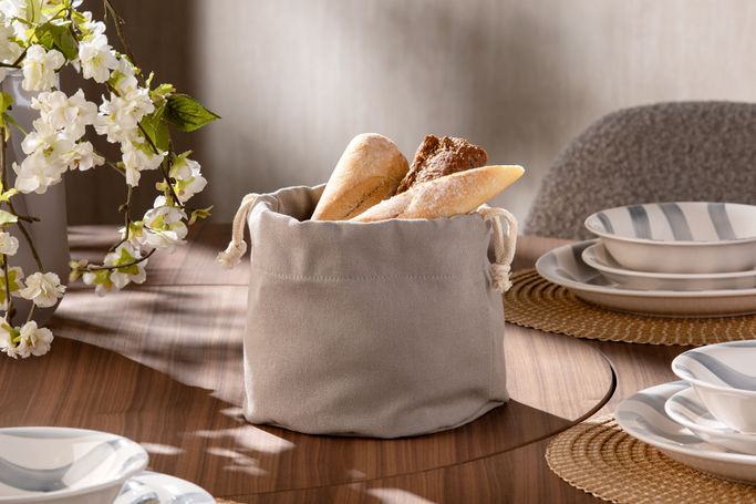 احتفل بالطعام الطازج وقدم لعائلتك وضيوفك تجربة لطيفة مع ماركينا سلة خبز. صمم على شكل كيس مع حبل للحفاظ على الخبز طازجًا. صنع من البوليستر باللون الرمادي. دع هذه القطعة الرائعة تزين طاولتك مع الحفاظ على خبزك طازجًا لفترة أطول.