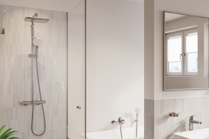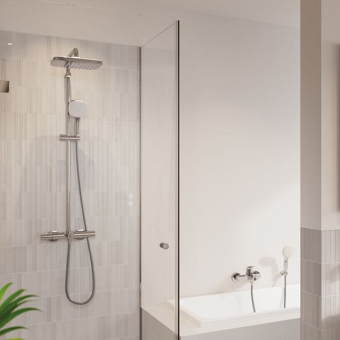 نظام شاور جداري متكامل من GROHE يجمع بين الأداء العملي والتقنيات الموفّرة للمياه، بتصميم مرن يناسب احتياجات الاستخدام اليومي، ويمنح الحمّام طابعًا متناسقًا وعصريًا.