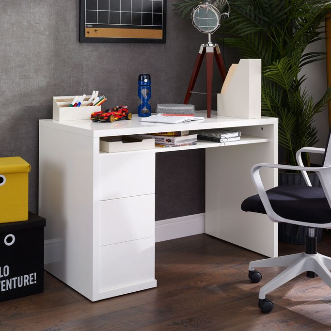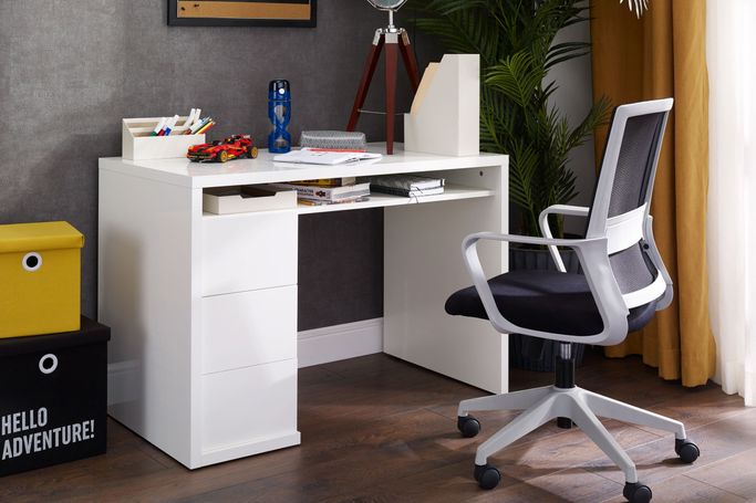 رحلة إنجازات. ابدأ رحلتك من الإنجازات الرائعة مع المذهل مكتب بريفلجو. سيلهم تصميمه الأبيض المشرق وجاذبيته العصرية روحك الفضولية لعالم من الاكتشافات الجديدة. سيكون سطح المكتب العريض بمثابة لوحتك الفنية الخاصة لتعبر فيها عن شغفك وأفكارك. أنشئ مساحة عمل مرتبة من خلال الأدراج الواسعة والرف المفتوح. صُنع المكتب من الميلامين الأبيض اللامع والذي سيتناغم بكل جمال مع أي لون تختاره للغرفة. اخلق بيئة منظمة تحفيزية وأطلق العنان لشغفك.