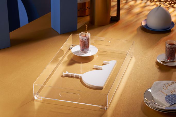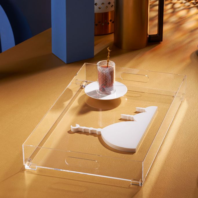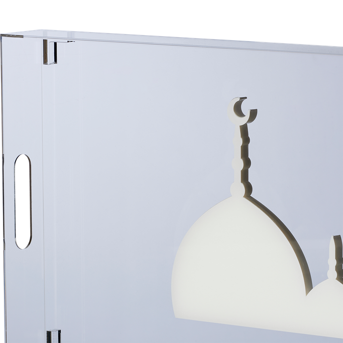 عرض الجمال. استمتع بتقديم أطباقك المميزة ومشروبات ضيوفك بطريقة أنيقة تعرض فيها جمال تقديماتك وتميزها مع آفاق صينية تقديم. صمم بشكل مستطيل مع رسوم لقباب إسلامية على قاعدة الصينية. صنع من الإكريلك الشفاف ومزخرف باللون الأبيض لإضافة لمسة من الفخامة.