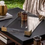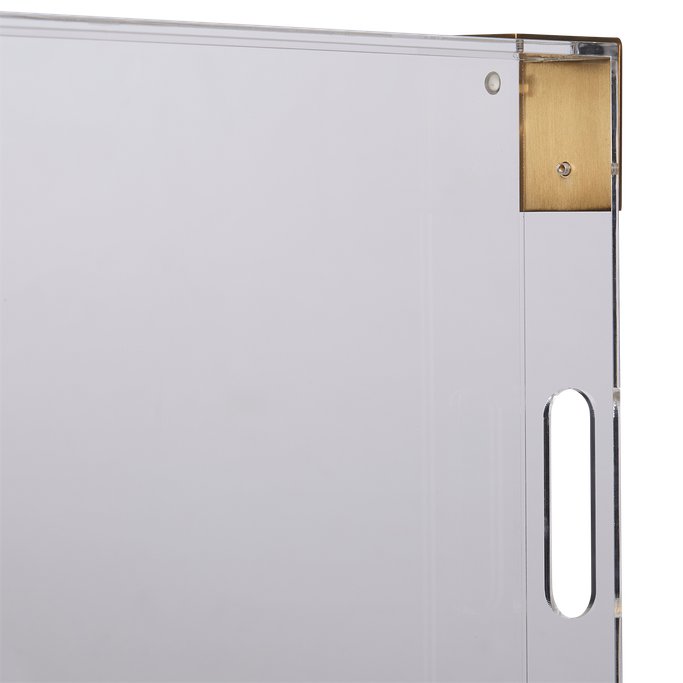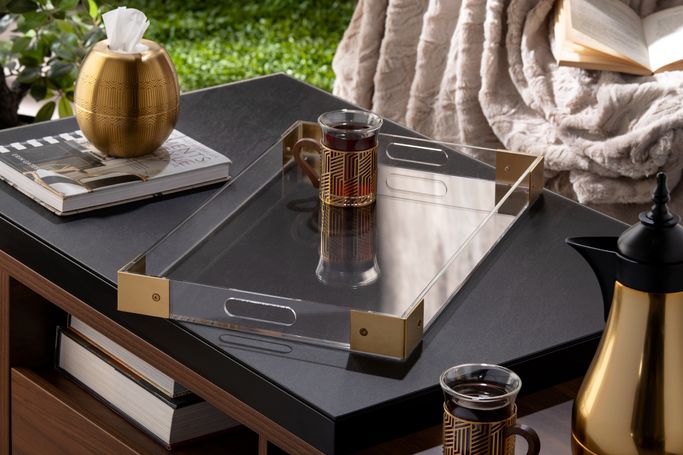 قصة الأناقة. تألق في تجمعاتك بأناقة استثنائية من بين تفاصيل الضيافة الراقية. استعد لإضفاء لمسة ساحرة على مساحتك مع فدوى صينية تقديم. صممت بشكل مستطيل مع حواف مرتفعة بمقابض وزوايا منحنية. صنعت من الأكريليك الشفاف ومطعم بالفولاذ المقاوم للصدأ بلون ذهبي أنيق. دع هذه الصينية تبرز كتحفة فنية تروي قصة الأناقة والاستثنائية.