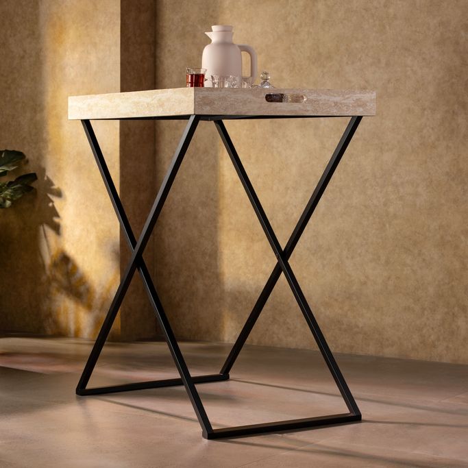 جاذبية خالدة. دع ضيافتك تتجلى في مشهد آسر مع فيانا حامل صينية كتحفة من البساطة والعملية التي تعزز مساحتك بجاذبية خالدة. صممت بأناقة بساقين متداخلين لحمل الصينية بشكل آمن كسيمفونية بصرية من العملية والأناقة. صنع من المعدن باللون الأسود الأنيق ليحول كل لحظة إلى عمل فني.