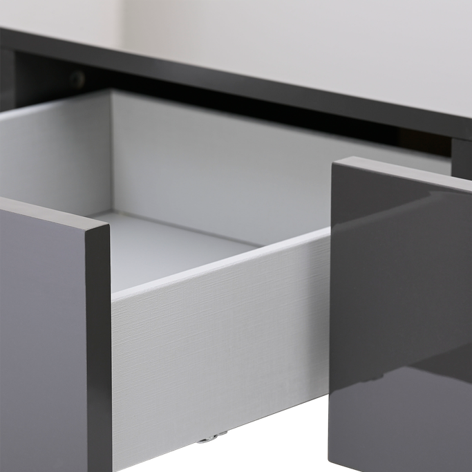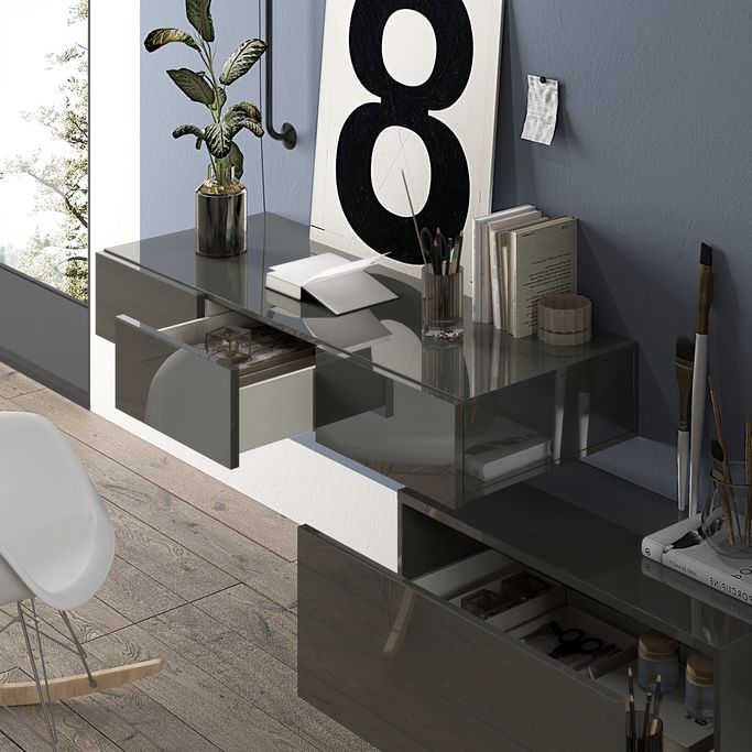 لمحة أنيقة. أضف لمحات خاطفة مليئة بالأناقة والسحر لأثاث منزلك مع فيكو وحدة مكتب حائط تلفزيون. ستضفي على جدارك مظهر عصري منعش. تستطيع استخدامه كمكتب إبداعي للمساحات الصغيرة. صممت ليتم تثبيتها على حائط وتحتوي على ٣ أرفف داخلية. صنعت من الميلامين باللون الرمادي بتشطيب لامع. احتضن النسمات العصرية في بيتك.