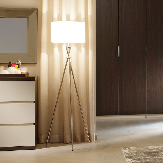 Enjoy the beauty of modern design with the Joshua Tripod Floor Lamp. Designed with a sleek circular light shade supported by three matching metal legs. Made from aluminum in a silver color, adding a contemporary touch to any space. Create a comfortable and modern atmosphere in your home.