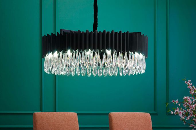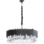 Express The Uniqueness Of Your Space with the Astro Modern Chandelier. Designed with an elegant circular geometric structure adorned with precisely arranged clear crystals. It is made from metal in a matte black color, combining durability and beauty. Illuminate your room with lighting that adds a touch of distinction.