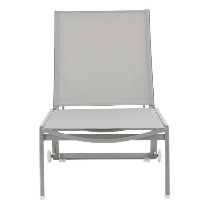 Above the Sky. Relax and enjoy a pleasant experience above the sky with Highland Sun Lounger. Lie back and relish the breathtaking views while experiencing a unique journey with its comfortable layout. Its timeless style and matte finish make it ideal for all types of outdoor spaces. The ergonomic structure allows you to adjust the backrest to any position you prefer, either for reading or resting. Designed with wheels that make it easy to move it around. It's made of aluminum and fabric with silver and gray colors to give an elegant and modern appeal. Build your own cozy zone beyond the sky.