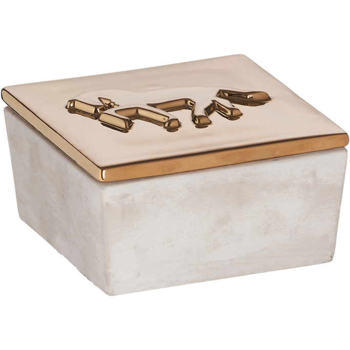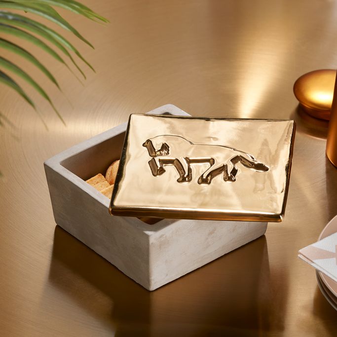 Historical Statement. The amazing Abiah Deco Jar will decorate Your table with a historical statement that will drown out attention. Bring the Arabic influence into your home to reconnect with the spirit of the desert. Designed with a lid to protect the inside and a horse pattern. It is made of ceramic and concrete in golden color. Let the golden sand spread its beauty around.
