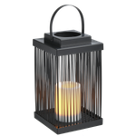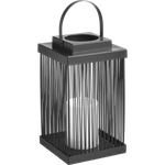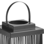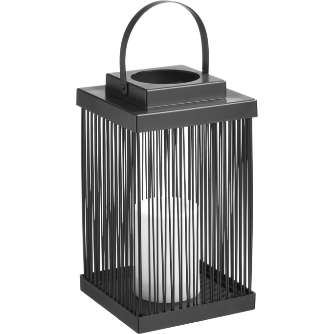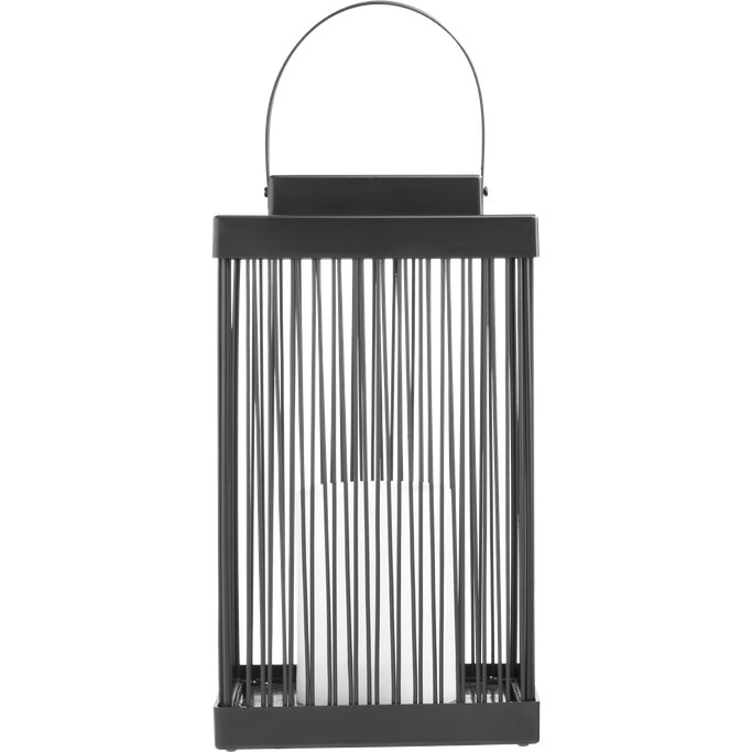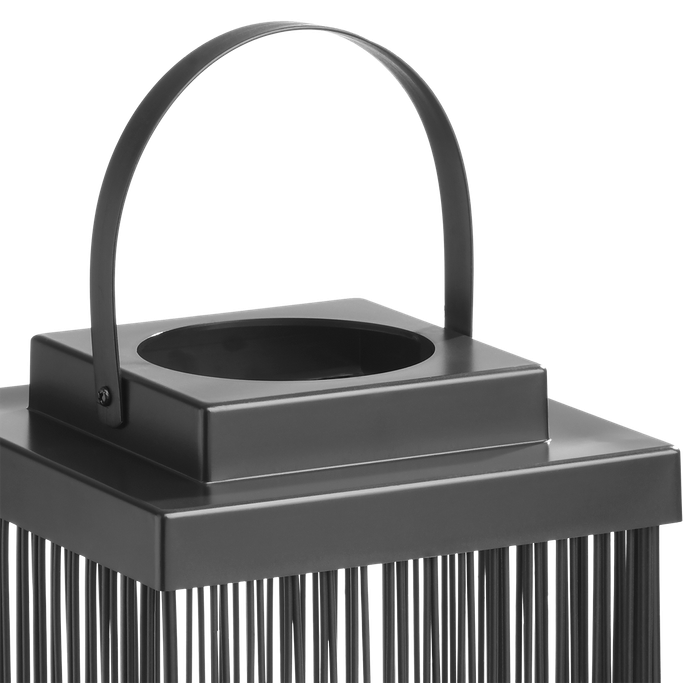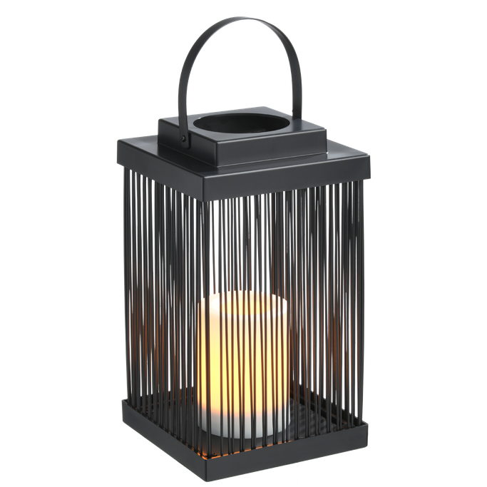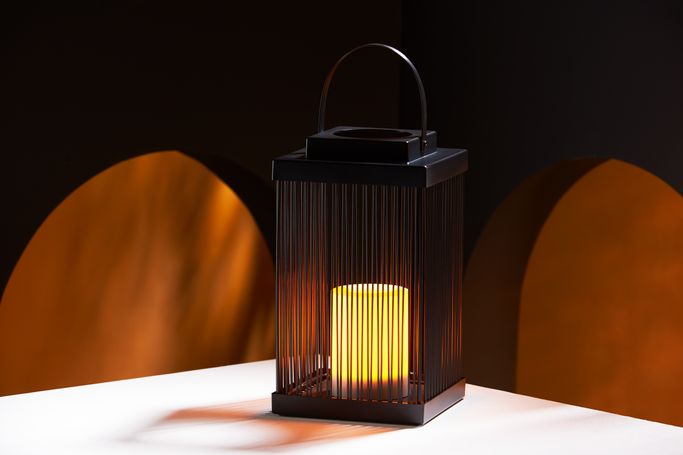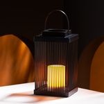 Like an Enchanting Candle. Illuminate everything around you to reflect the beauty of your moments every night with the Hal Hialalh Lantern. Designed in a rectangular shape with thin panels to allow light to pass through with a top handle for easy carrying, alongside a candle inside. It is made from luxurious, captivating black Iron and plastic. Embrace the splendor of the nights and light up your home.