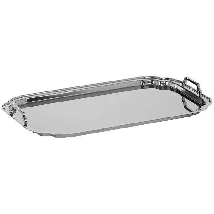 Reflection of Excellence. Stand out with a piece that adds artistic elegance to your food with the La Maison serving tray. Designed in a streamlined geometric shape with smooth high edges and handles to add a luxurious atmosphere to any occasion. It is made of stainless steel in silver to reflect bright moments. Enjoy exceptional style.