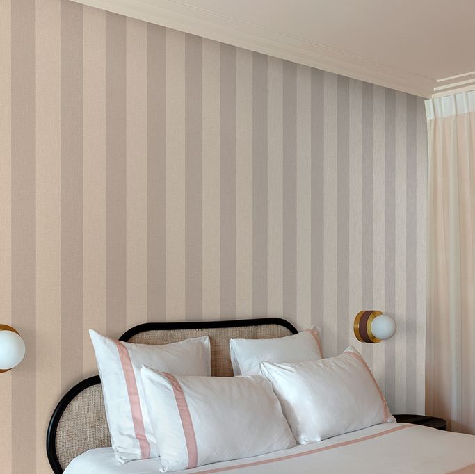Enjoy elegance and calm with Atmosphere Wallpaper. It is made from vinyl plastic and non-woven fabric in a Light Grey color, featuring vertical stripes that add a harmonious aesthetic touch. Give your walls a modern look that blends seamlessly with decor elements.