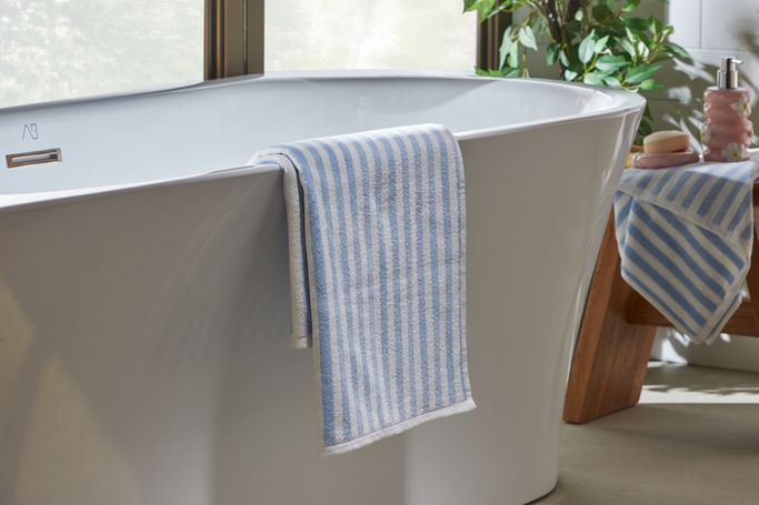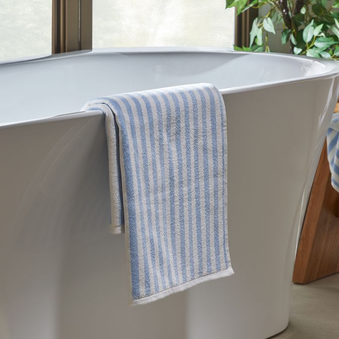 2 Ply YD Stripe Bath Towel - White | Light Blue