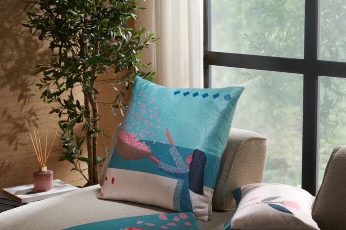 Warda Cushion Cover - White | Pink | Teal - 50 x 50 cm