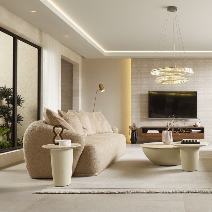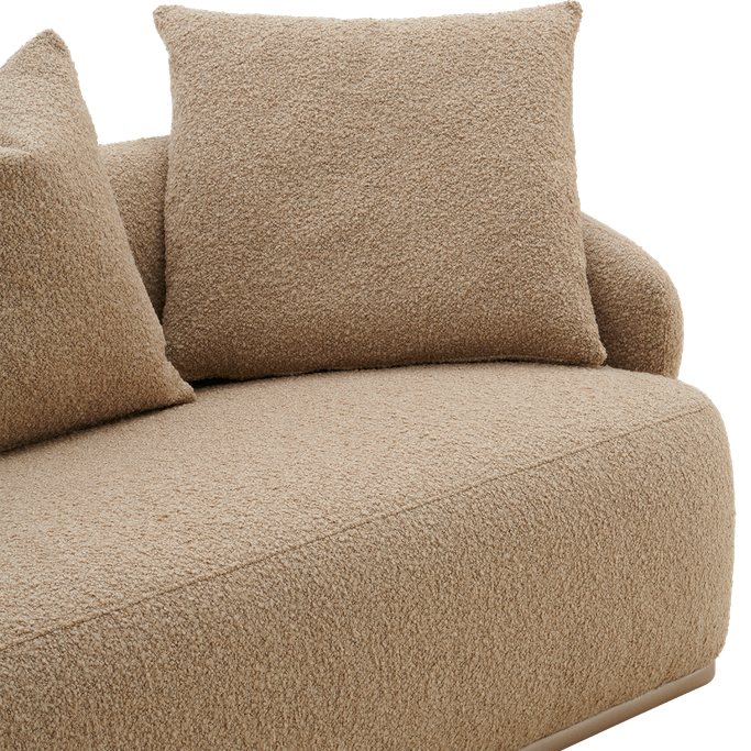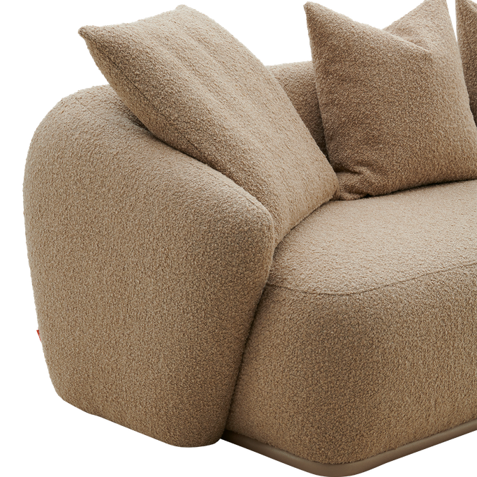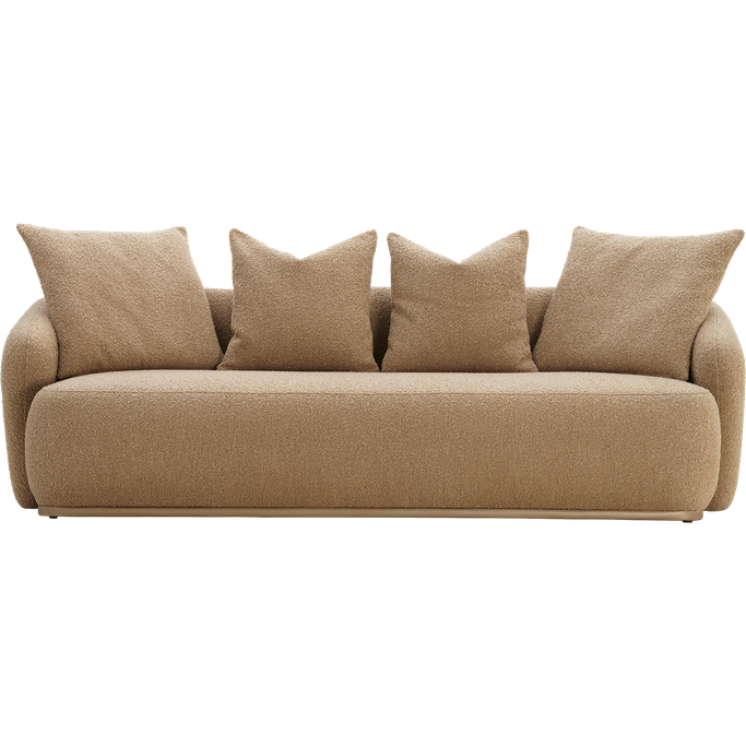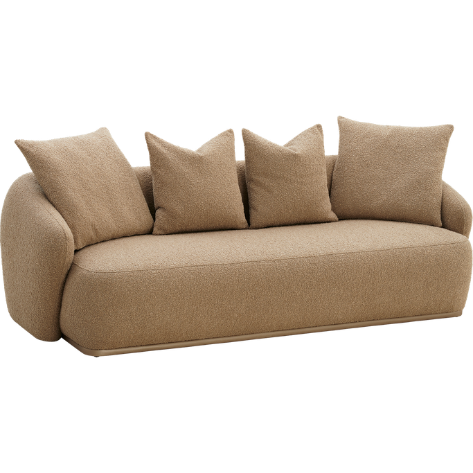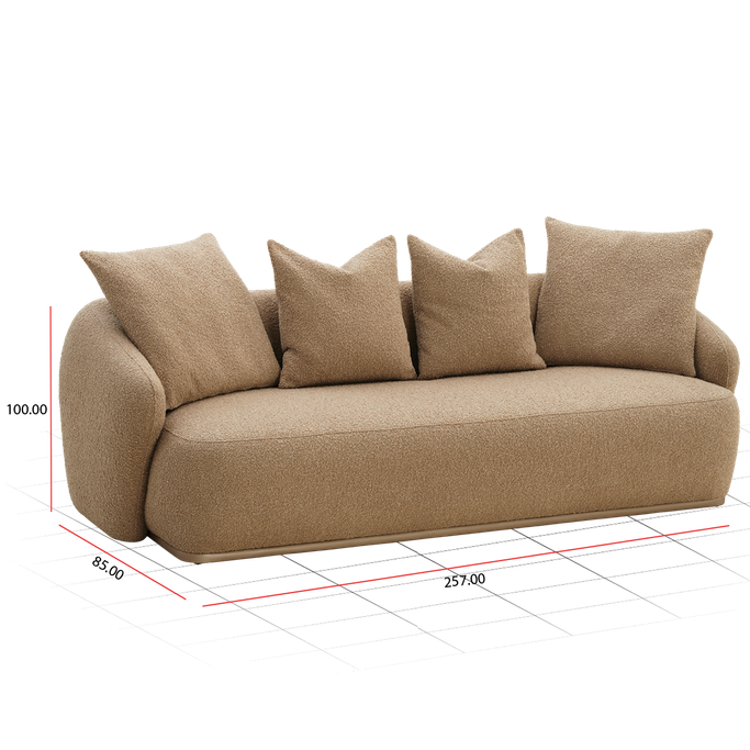 Furnish your home with a piece that blends elegance and coziness: the Lusso 3-Seater Sofa. Designed with a low back and deep seats. the large and plush cushions enhance the sitting experience. The rounded arms give it a smooth appearance, offering additional support and ideal comfort. Made from a solid wood frame and covered with soft, beige fabric, it adds warmth to your space.