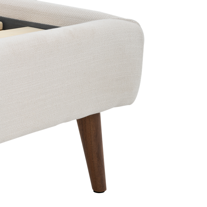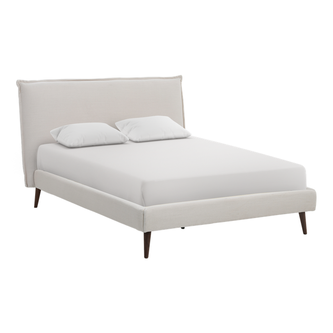 Dreamy Clouds. Let the morning light shine through its sparkling beauty with Nolan Bed. Embrace its delicate beauty as dreamy clouds provide you calmest moments. Designed with a high back, a sturdy frame, and traditional upright legs. It is made of brown wood with polyester in the base to allow for flexibility with a beige fabric covered. Get the comfort level that calms you.