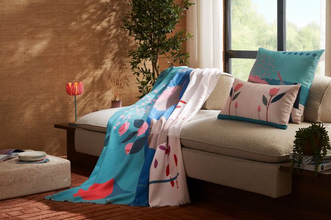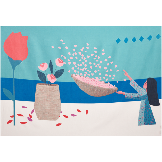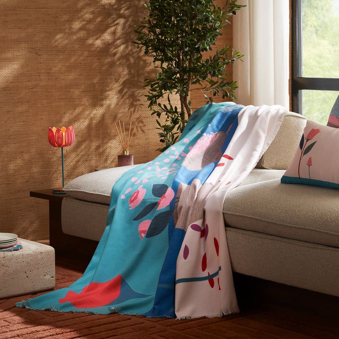 Surround yourself with the beauty of blooming flowers with the Warda Throw. Designed with artistic patterns that reflect the spirit of gardens and their harmony. It is made from polyester fabric in white, pink, and teal colors. Make your moments more comfortable and elegant.