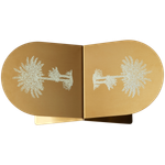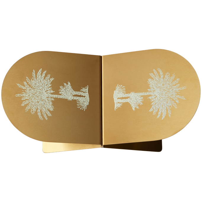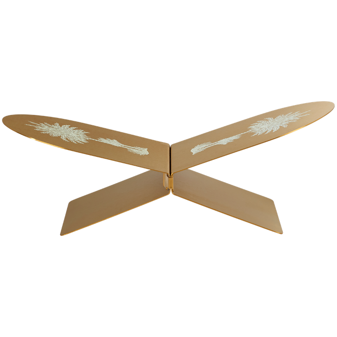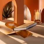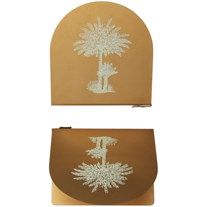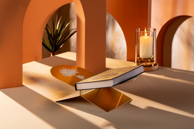 Ramadan is the month of the Holy Quran. Let the Nakheel Book Stand accompany your spiritual moments of recitation. Designed with interlocking panels adorned with palm tree patterns, creating a serene ambiance for worship. It is made from stainless steel in a golden color, with elegant white engravings. Keep the Quran ever-present during the blessed nights.